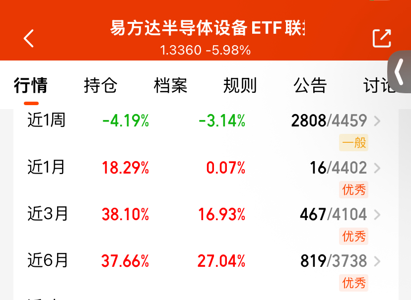 今天股市高开震荡,科技有所分化,其中半导体跌幅比较大,我打算趁回调上车$易方达半导体设备ETF联接C(OTCFUND|021894)$啦,由于最近闻泰科技被荷兰针对,黑天鹅事件导致半导体板块下跌,我们耐心布局,坐等事件过去之后来吃行情反弹的红利吧!$万家中证半导体材料设备主题ETF发起式联接C(OTCFUND|023829)$0$华夏半导体材料设备ETF联接C(OTCFUND|020357)$$天弘中证半导体材料设备主题指数发起C(OTCFUND|021533)$$国泰中证全指通信设备ETF联接C(OTCFUND|007818)$$广发中证半导体材料设备ETF发起式联接C(OTCFUND|020640)$$国泰半导体设备ETF联接C(OTCFUND|019633)$$#黄金逼近4200美元!美银:明年5000##3900点得而复失!A股风格要改了?#