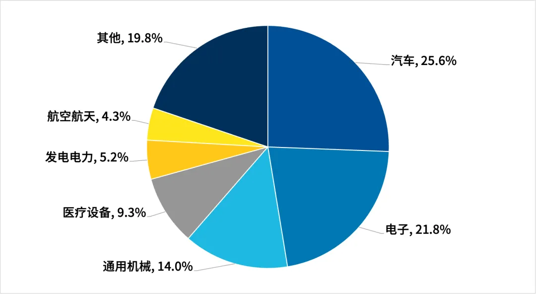 2024年中国机床在应用端各行业销售规模分布