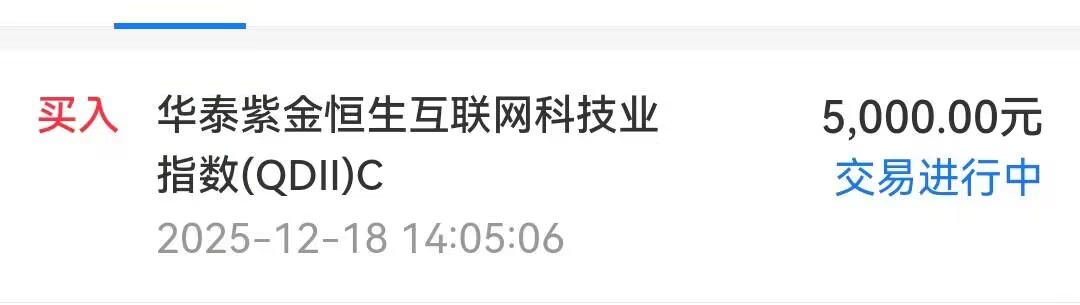 3、$华泰紫金恒生互联网科技业指数型发起基金(QDII)C(OTCFUND|018524)$,买入5000元