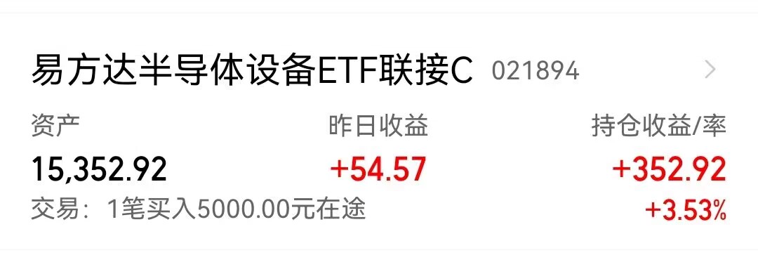 1、$易方达半导体设备ETF联接C(OTCFUND|021894)$ ,买入5000元