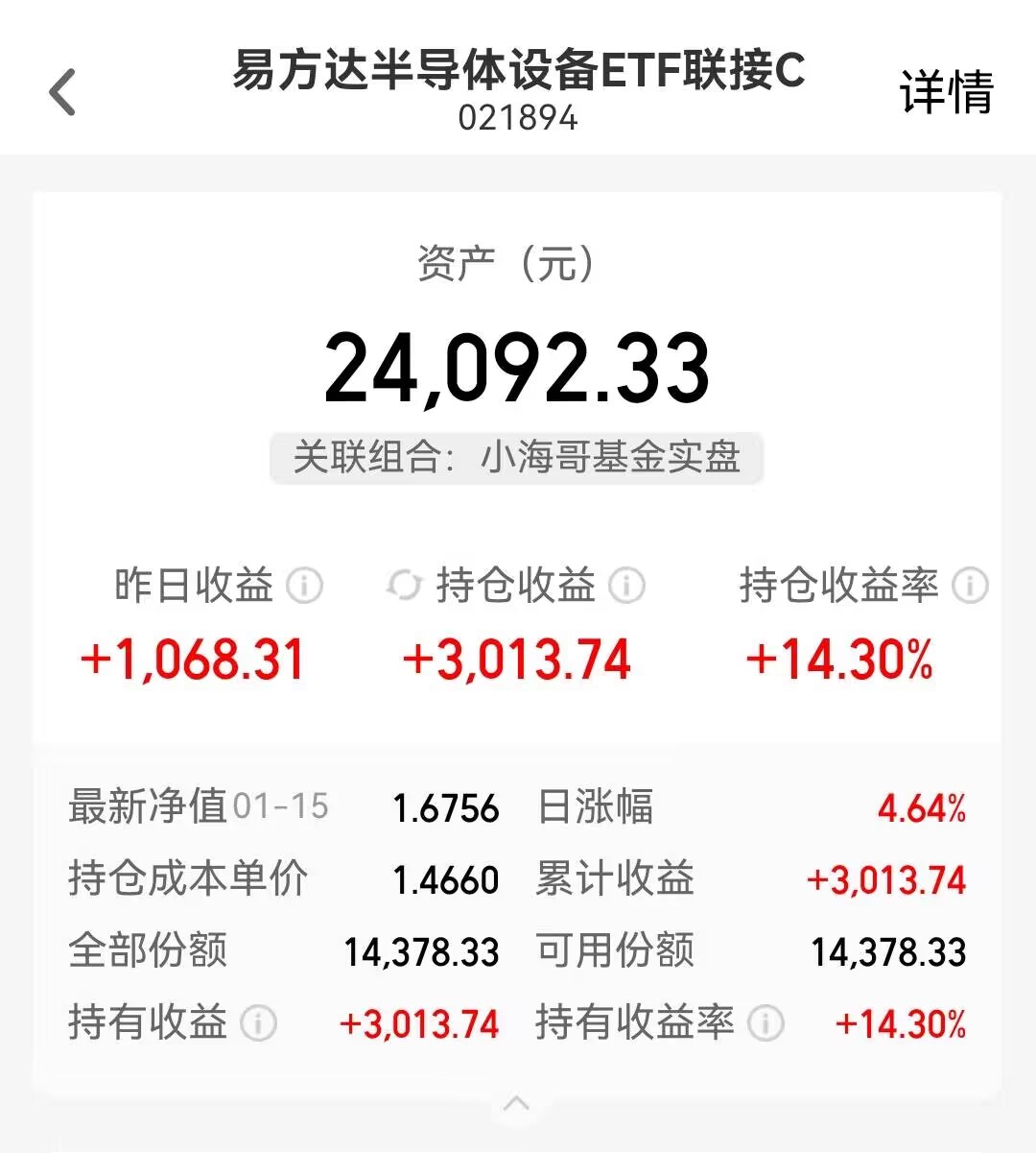 $易方达半导体设备ETF联接A(OTCFUND|021893)$