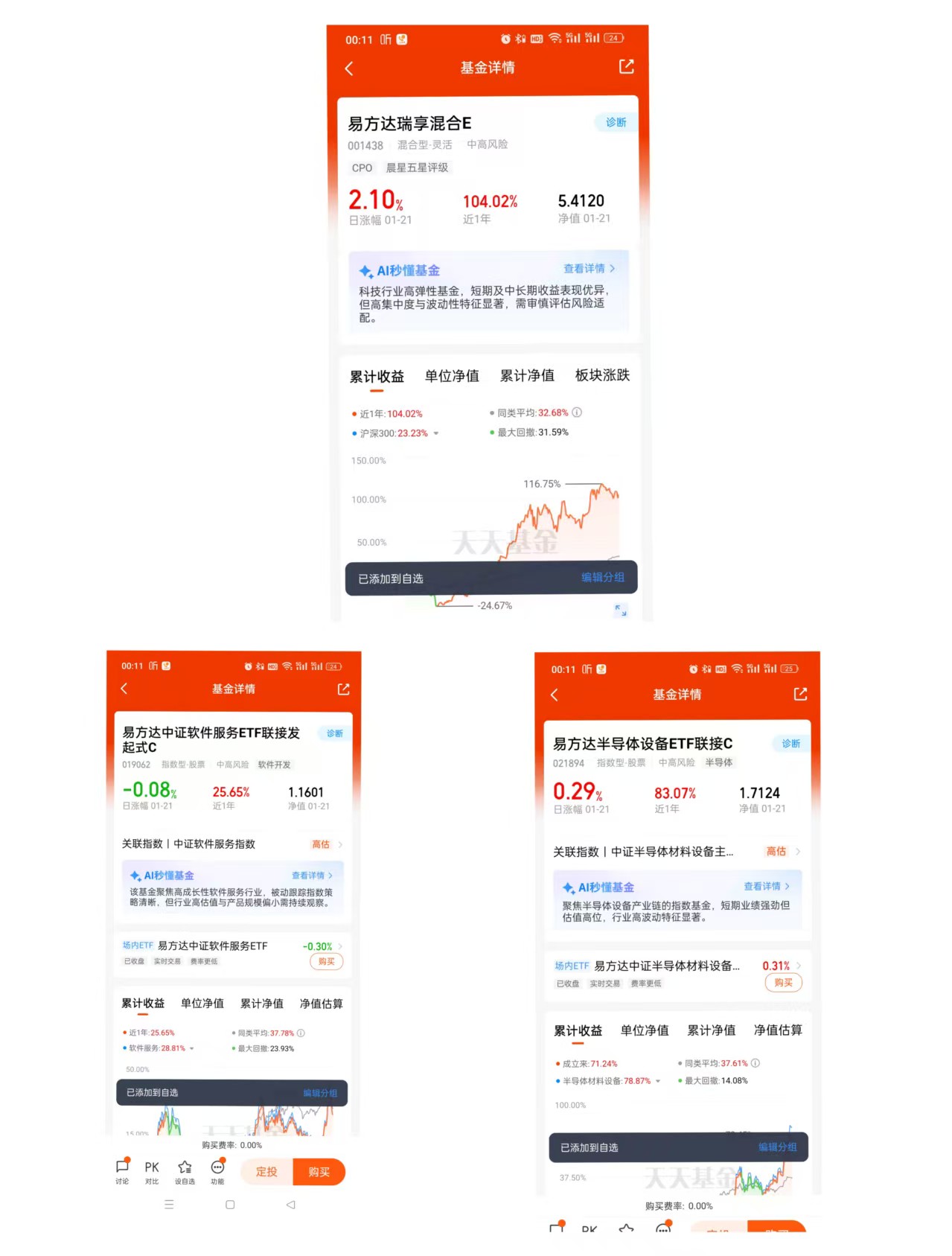 我选了$易方达半导体设备ETF联接C$ ,逻辑简单:设备材料是算力的“铁锹”。国产芯片要追赶,必须砸钱买设备、扩产能。这个基金场外10元起投,管理费率才0.5%,门槛低到可以定投。最近市场调整,正好慢慢买,把成本摊平。