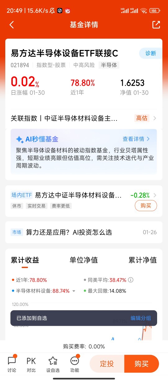 选择易方达半导体设备ETF联接C(021894),则是基于普通投资者布局半导体设备赛道的实操最优解。首先,该基金紧密跟踪中证半导体材料设备主题指数,持仓覆盖光刻机、刻蚀、薄膜沉积、检测等半导体设备全产业链龙头,精准锚定算力需求驱动的设备投资主线,避免了个股选股的踩雷风险,同时享受到板块整体成长的红利,2025年三季度该指数涨幅超19%,基金净值同步大幅上涨,长期业绩表现位居同类前列。其次,易方达作为头部基金公司,在指数基金管理上具备成熟的跟踪能力,跟踪误差控制精准,能有效复制指数表现,确保投资者充分分享半导体设备板块的上涨收益;C类份额申购0费率,持有7天以上赎回费率较低,10元起投的门槛适合普通投资者定投或波段操作,实操灵活性极强。最后,相比直接投资半导体设备个股,该基金分散了单一企业的技术研发、订单波动风险,同时覆盖国内优质国产设备厂商与全球产业链核心标的,既把握国产替代红利,又分享全球算力需求增长的收益,是布局算力设备赛道的“一站式工具”。