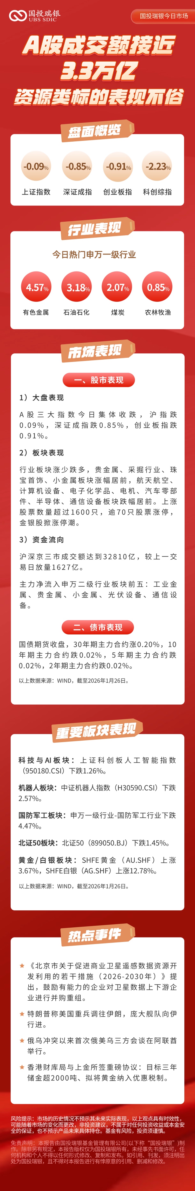 1月26日:A股成交额接近3.3万亿,资源类标的表现不俗!