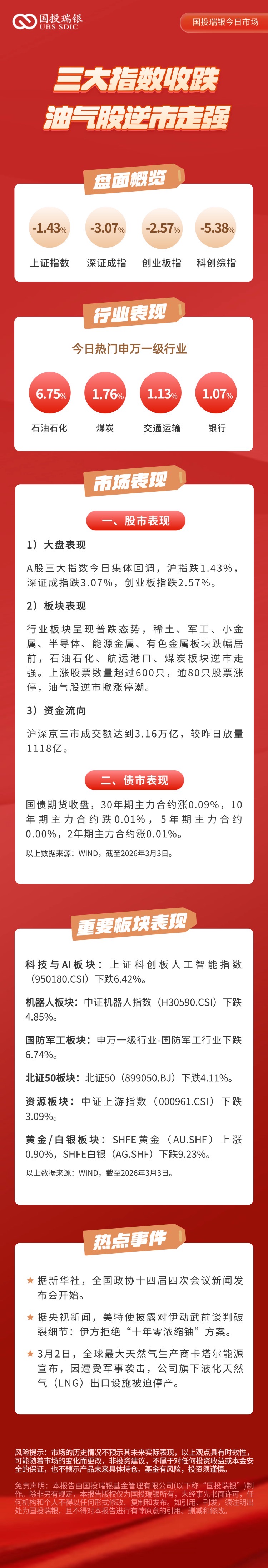 3月3日:三大指数收跌,油气股逆势走强!