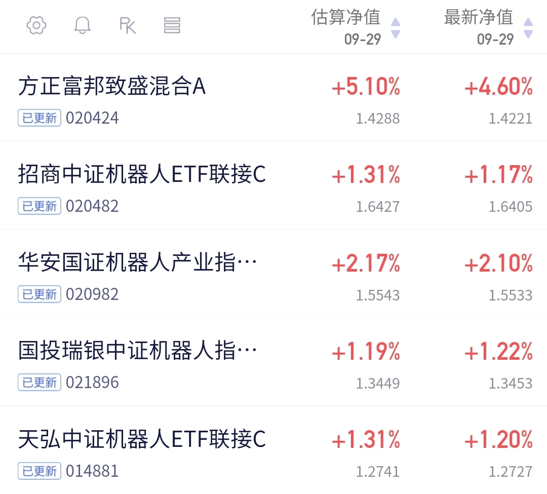 $天弘中证机器人ETF发起联接C$ 今天上涨了1.20%加油