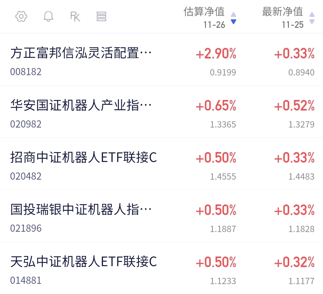 $天弘中证机器人ETF发起联接C$ 估值上涨0.5%,加油