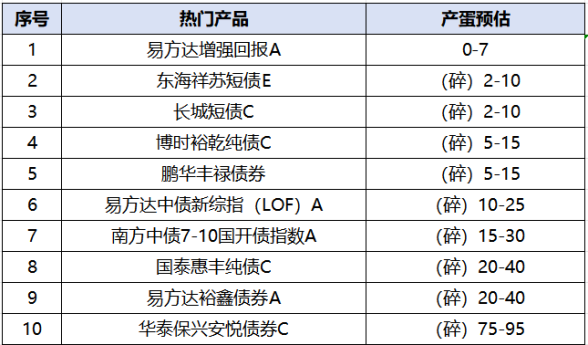 热门产品产蛋预估:(根据16:00行情预测,仅供参考,以实际产蛋为准)