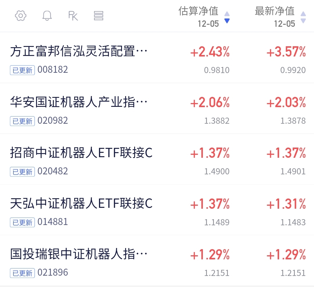 $天弘中证机器人ETF发起联接C$ 今晚上涨了1.31%,也不错