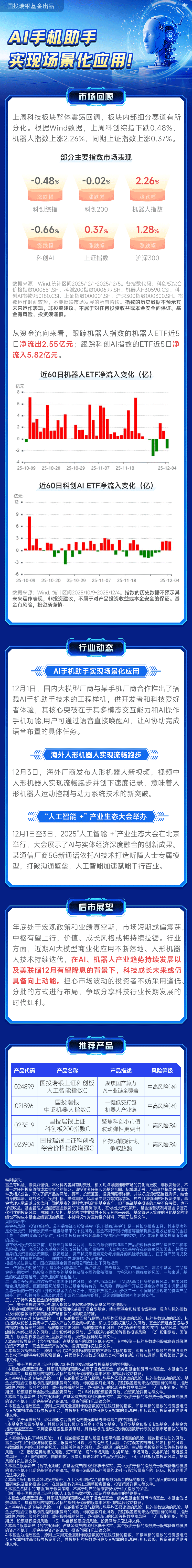 $国投瑞银中证机器人指数发起式A(OTCFUND|021895)$$国投瑞银中证机器人指数发起式C(OTCFUND|021896)$$国投瑞银上证科创板200指数发起式A(OTCFUND|023518)$$国投瑞银上证科创板200指数发起式C(OTCFUND|023519)$$国投瑞银上证科创板综合价格指数增强A(OTCFUND|023903)$$国投瑞银上证科创板综合价格指数增强C(OTCFUND|023904)$$国投瑞银上证科创板人工智能指数发起式A(OTCFUND|024898)$$国投瑞银上证科创板人工智能指数发起式C(OTCFUND|024899)$#券商行业迎利好:杠杆上限“松绑”##摩尔线程开盘价650元!一签赚超26.7万##12月你看好哪条投资主线?#