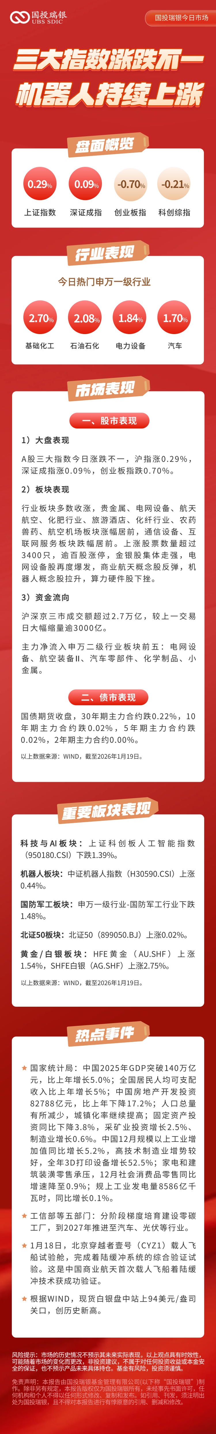 1月19日:三大指数涨跌不一 ,机器人持续上涨!