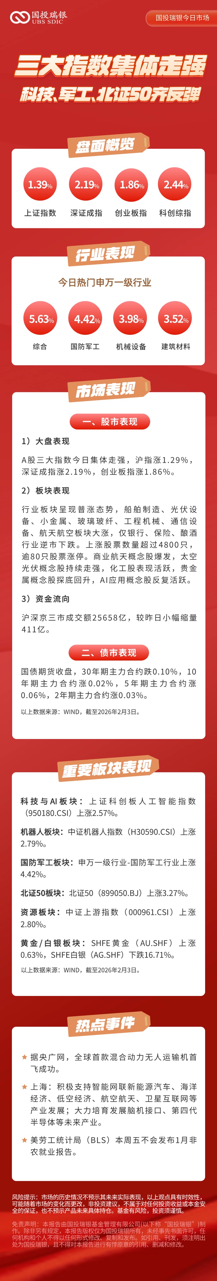 2月3日:三大指数集体走强,科技、军工、北证50齐反弹!
