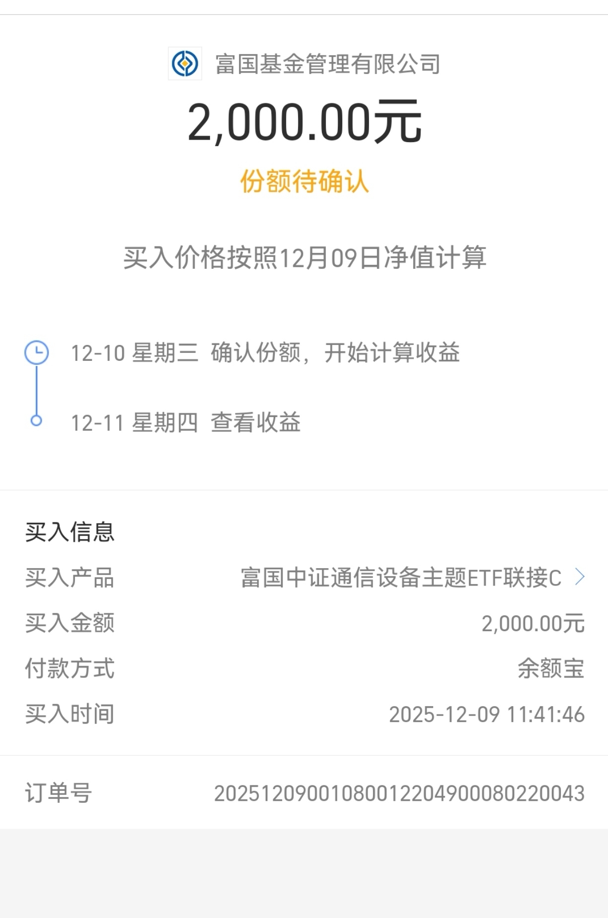 宝子们,隔夜美股三大指数集体收跌,波动都不大,纳斯达克微微收绿,今天A股三大指数低开高走,看来大概率又能吃肉了,昨天加的$富国中证通信设备主题ETF发起式联接C$这会涨3%左右,反弹力度是真强,昨天就大涨4.79%,近1年涨幅达95.76%,这只基金是全市场中兴通讯、中际旭创持仓最高的基金,而且消息面上,Marvell宣布以约32.5亿美元收购专注于下一代CPO技术的AI初创公司Celestial AI,标志着产业巨头加速向光连接转型.叠加国产AI模型迭代,正式发布DeepSeek-V3.2性能达到全球前列水平,强化了市场对国产算力需求持续增长的预期,CPO作为提升算力效能和降低功耗的关键前沿技术,后续行情可期,今天我要继续右侧加仓2000元。