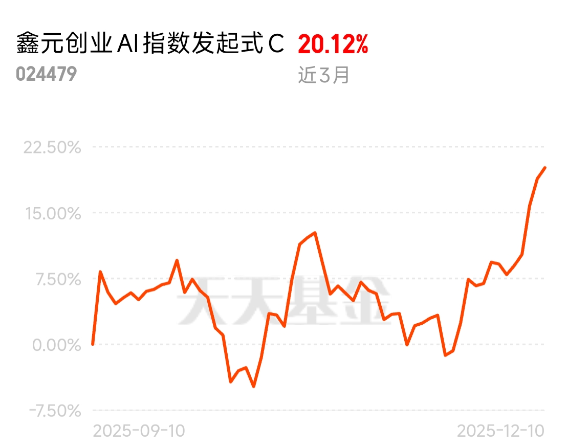 鑫元创业板人工智能指数C昨日涨1.07%,近3月涨20.12%,AI赛道成长力拉