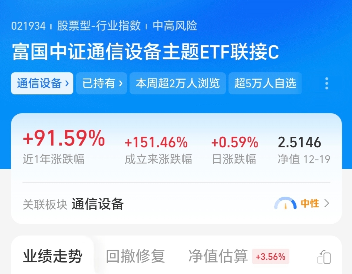 今天股市彻底被科技通信带起来了,股市三大指数收红,沪指站上3900点,创业板涨超2%,通信设备主题涨超3%,通信设备迎来技术利好。OpenAI推出GPT-5.2-Codex智能体编程模型,在长程任务处理、大规模代码重构及Windows环境适配等方面实现全面升级,为通信相关编程提供高效工具。还有上海交大则突破新一代光计算芯片技术,研发出支持大规模语义媒体生成模型的全光计算芯片,利好光通信。$富国中证通信设备主题ETF联接C$$富国中证通信设备主题ETF发起式联接C$ 回撤小。反弹修复快,今天估值涨3.56%,比指数涨的多,赢利能力强,近一年90多个点,继续看好了。
