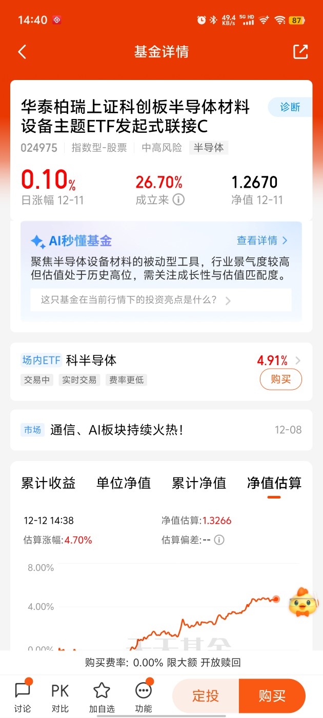 今天科创半导体设备板块太燃了!看着就让人激动。这波上涨可不是偶然,现在半导体行业景气度越来越高,先进制程需求强劲,成熟制程也在复苏,加上国产替代的节奏越来越快,整个板块的基本面越来越好。想参与这个赛道但又怕踩雷的朋友,真心推荐华泰柏瑞的产品。它专门聚焦科创板的半导体设备和材料领域,跟着核心指数走,能全面覆盖行业机会,不用自己费心选股。而且C类的设计对咱们小资金投资者很友好,费率划算,进出灵活,就算是分批定投也很合适,既能抓住行业增长的红利,又能控制风险,性价比超高。#我的超额日记# $华泰柏瑞上证科创板半导体材料设备主题ETF发起式联接C$