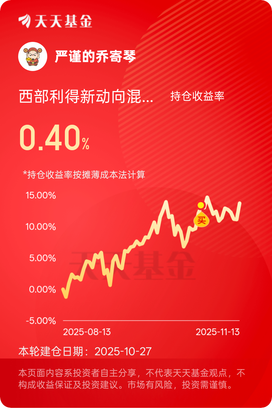昨天肉不算小,表现还不错。近期业绩也是领先同类产品的存在,继续保持$西部利得新动向混合C$ #晒收益#