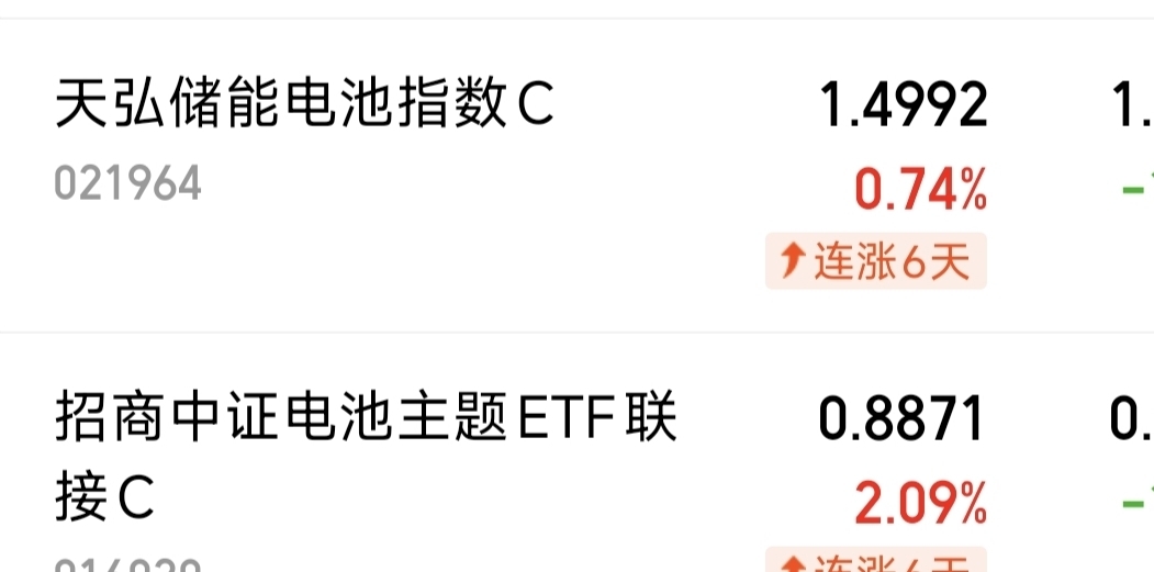 $天弘储能电池指数C$ 0.74%,加油呀!