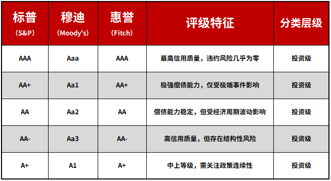 一般来说,AAA/Aaa 是最高级,表示这个国家或者企业信用很好,债务偿付能力强,违约风险很低;