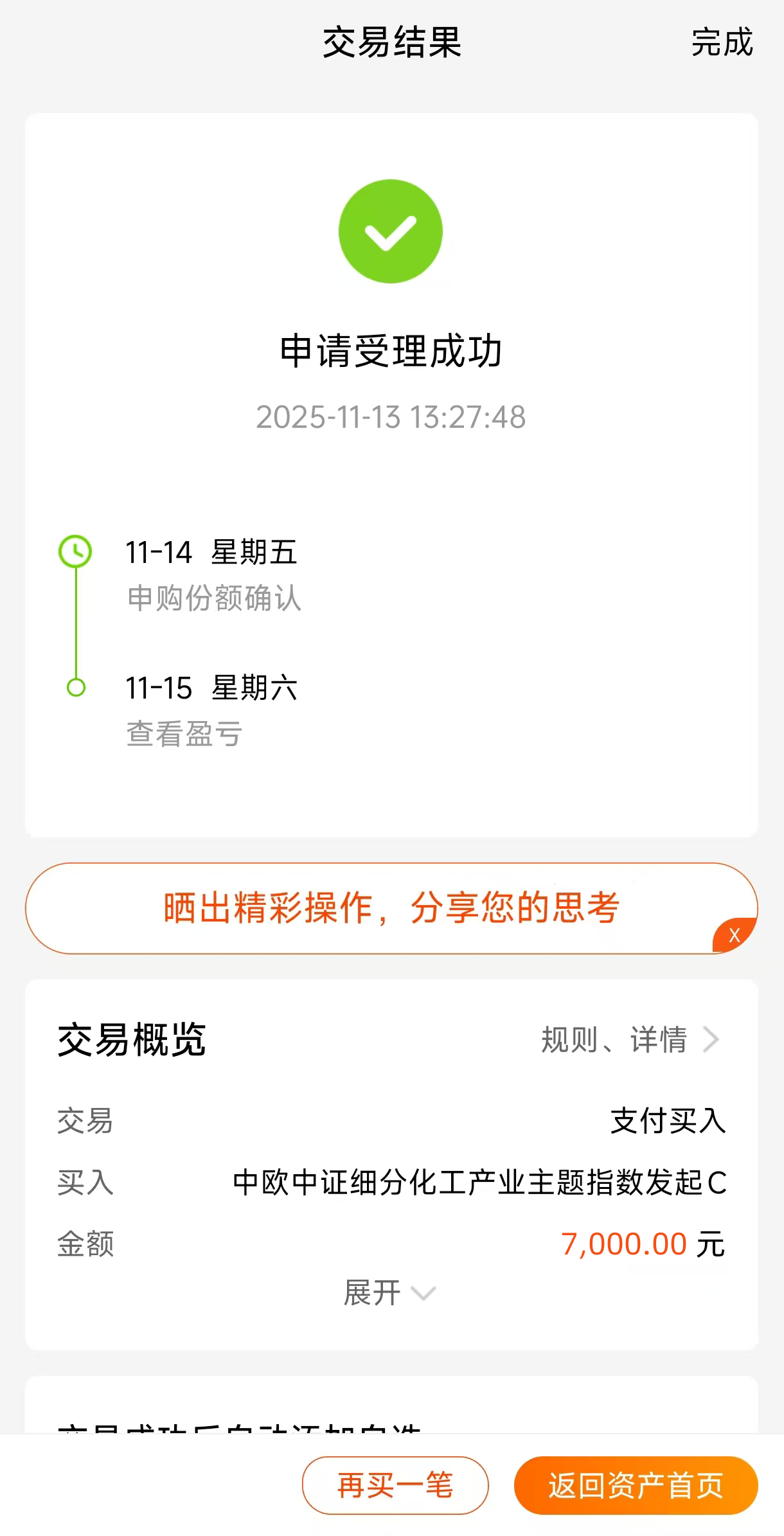 近期科技板块波动加剧,部分投资者转向化工等相对稳健的领域。$中欧化工产业混合发起C$(024641)成立不足三个月,净值从1元升至1.15元以上,表现优于化工指数。作为市场上稀有的纯化工主题主动基金,其避开了科技板块的内卷竞争。行业层面,方向推动“反内卷”与自律减产,磷矿、制冷剂等品种价格逐步企稳。同时储能、新能源车需求带动材料订单增长,企业库存处于低位,利润有望逐步释放。该基金重点配置磷化工、有机硅等细分领域龙头,覆盖新能源上游材料供应商,契合当前涨价趋势。当前位置具备中长期配置价值,详情页提供满2万减36元红包,可适当降低交易成本。#沪指刷新10年新高!4100点指日可待?#