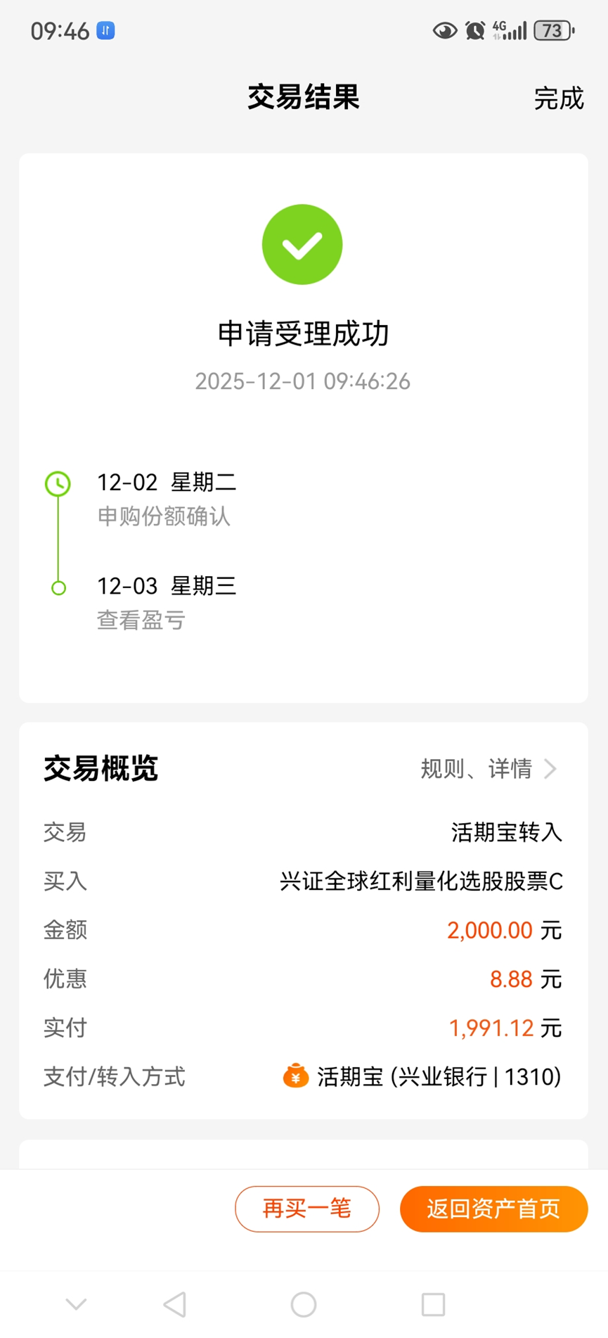 目前来看,这只基金的量化策略是成功的。今天我继续买入2000元(天天基金现在买入,有红包8.88元,买入1000元即可享受)。