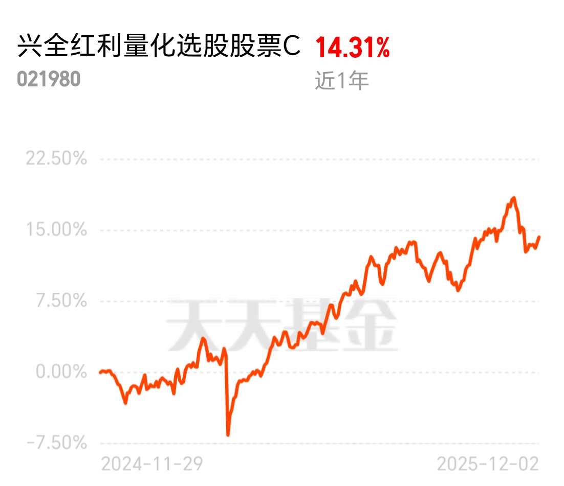 选基就挑稳的!兴证全球红利量化选股股票C(021980)太会“稳赚”——红利+量化双buff叠满,近1年涨超14.31%,小涨都是稳稳的幸福!策略硬核、走势漂亮,想拿稳稳收益,这只闭眼跟~