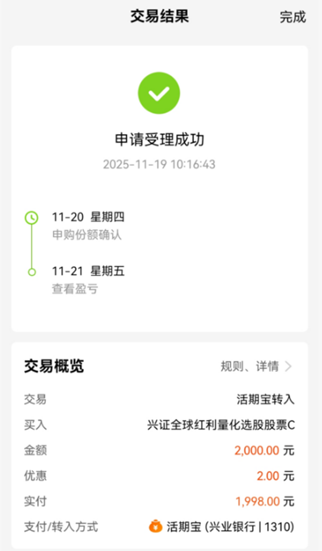 今天继续建仓兴证全球红利量化选股股票C(021980)。相对于中证红利指数,这只基金自成立以来的超额收益(2024年10月31日成立),还是相当明显的。因此,我选择这只以红利为基础策略的主动基金。