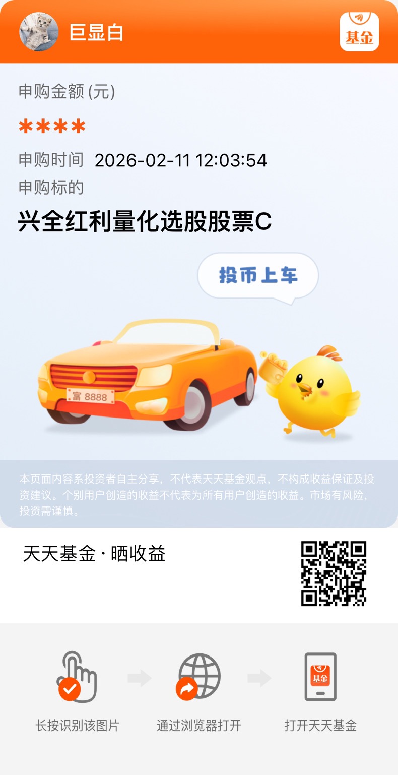 刚买兴全红利量化选股C,今日+0.21%,近1年收益21.33%,回撤9.88%,整体表现平稳,期待后续。
