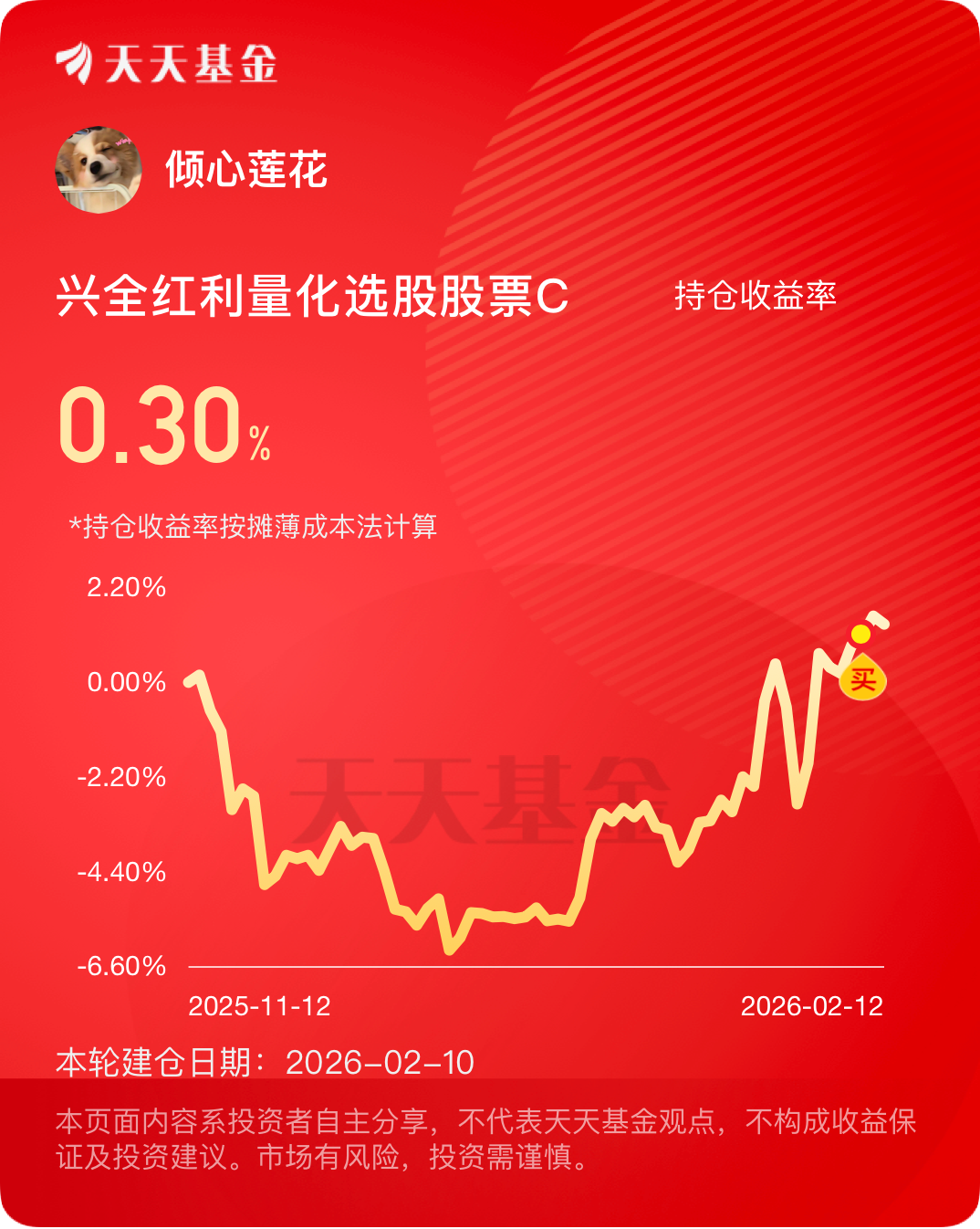 今日市场缩量震荡,行情磨人不折腾,兴全红利量化C主打高股息+量化纪律,震荡市里更稳更安心,长期拿得住。#晒收益#