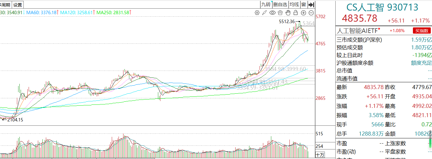 全球工业AI市场预计到2030年将跃升至1540亿美元,国家政策也明确推动工业机器人密度达到500台/万人,越来越多的企业正将AI技术从概念验证转向深度落地。人工智能的走势也跟随利好持续上行,从2024年9月至今上涨超100%。
