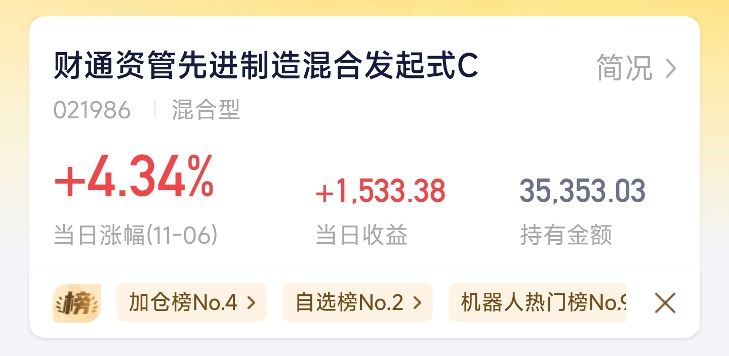 谁懂啊4个点还有谁!机器人的时代回来了!$财通资管先进制造混合发起式C$
