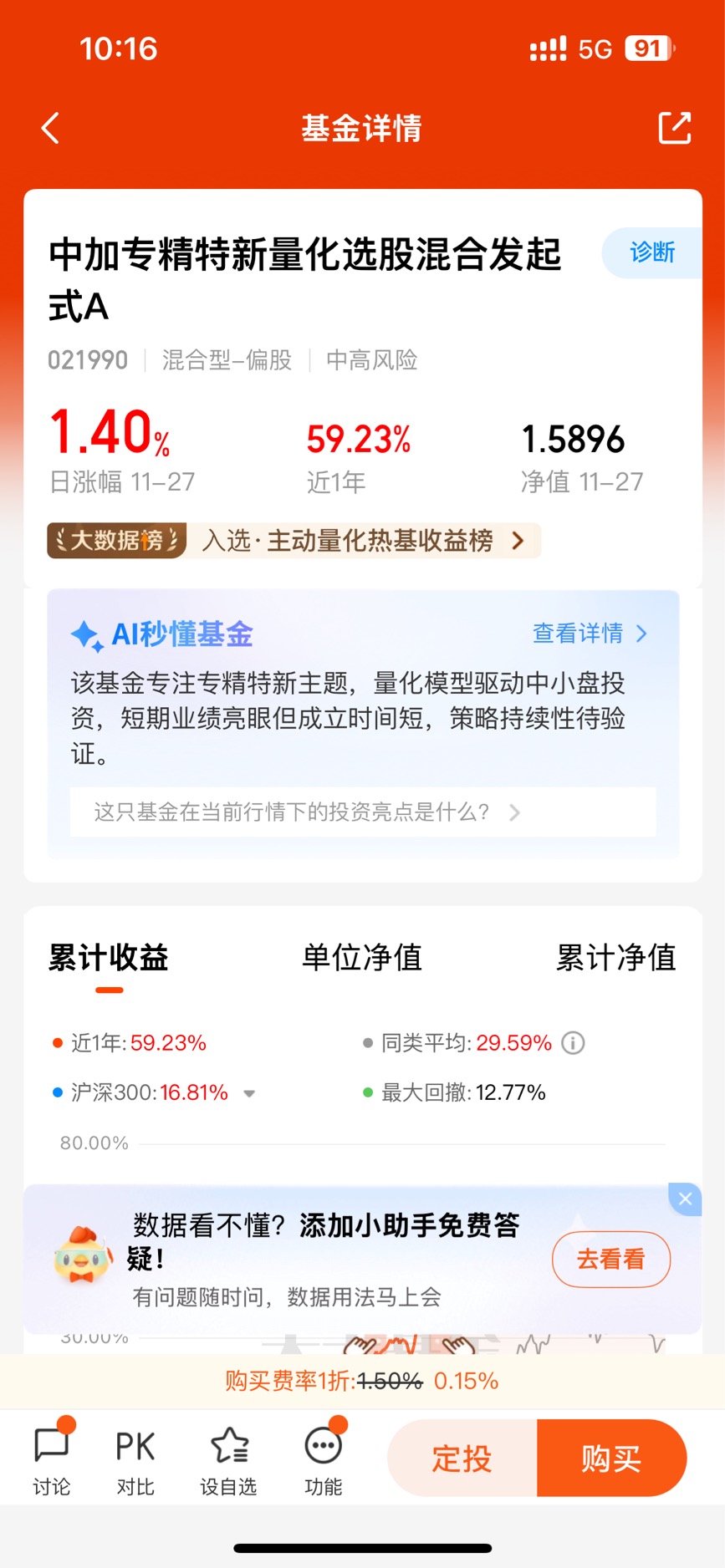当然,需要注意的是,该基金属于中风险产品,股票仓位较高,仍会受到市场波动的影响,适合能够承受一定短期波动、追求长期成长收益的投资者。对于像我一样偏爱稳健配置的人来说,可以将其作为组合中的“成长增强部分”,通过分批买入、长期持有来平滑波动,分享专精特新赛道的长期红利。