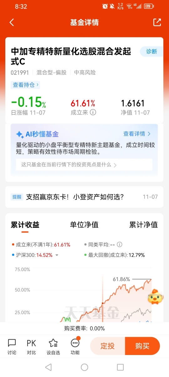 更让我惊喜的是它的“小盘量化+科创属性”双重buff。“专精特新”企业多是细分领域的隐形冠军,规模适中、成长空间广阔,刚好踩中了本轮牛市“小盘”的风口;而量化选股策略又像是给投资上了一层“安全锁”,基金经理通过专业的量化模型筛选标的,分散了个股风险,避免了单一赛道波动带来的冲击。持有这段时间,我最深的感受就是“稳中有进”:市场上涨时,它能紧跟科技和小盘主线,净值稳步攀升,给我带来了超出预期的收益;市场调整时,又能凭借量化策略有效控制回撤,不用像持有纯赛道基金那样提心吊胆,这种“既赚得到钱,又睡得安稳”的投资体验,在牛市行情中尤为难得。