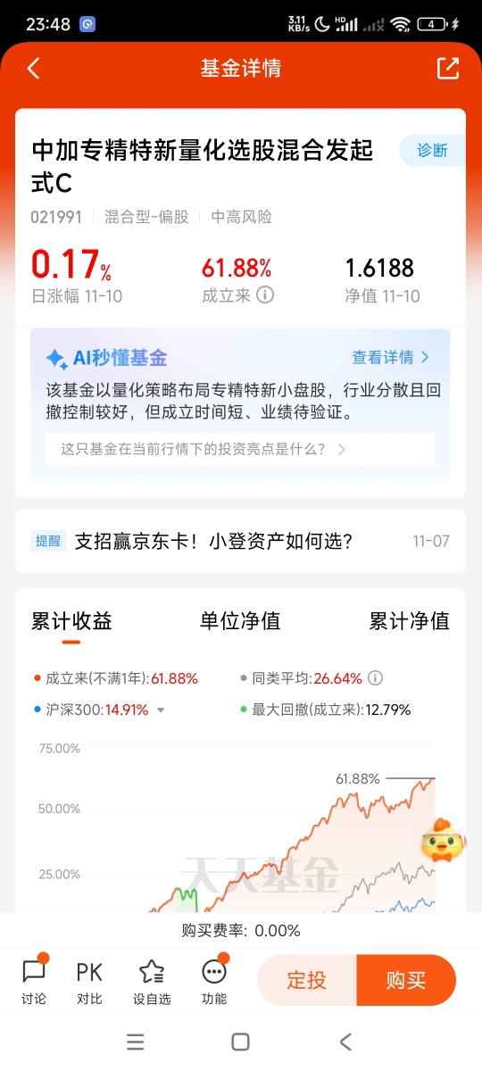 中加专精特新量化选股混合发起式C(代码:021991)是一只聚焦于“专精特新”企业的混合型基金。精准把握政策主线 紧扣“专精特新”国家战略,投资于经过筛选的优质创新型企业,布局高端制造、新材料、半导体等新质生产力方向。