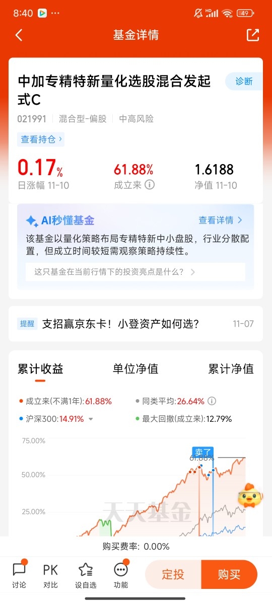#如何选择小登资产#我选择 $中加专精特新量化选股混合发起式C$ !#晒收益#