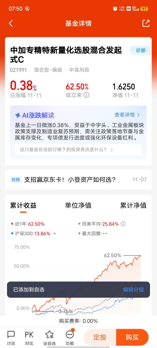 总之我觉得,中加专精特新量化选股混合发起式 C 凭借明确的投资方向、科学的量化选股策略、灵活的资产配置、利益绑定的发起式设计以及合理的费用结构等多方面优势,一定能为广大投资者提供了一个参与优质企业成长、追求稳健投资收益的良好选择。$中加专精特新量化选股混合发起式C$ @中加基金 @中加基金 袁素 @勤学苦练的厚道人