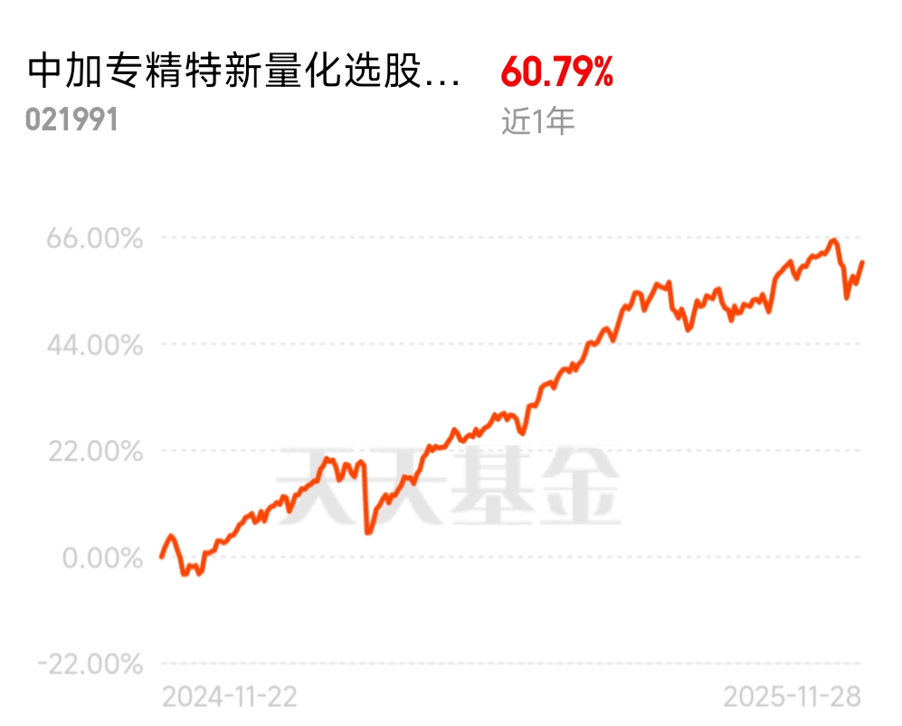 赛道投资派专注于人工智能、半导体、新能源等高成长性行业,犹如冲浪手追逐浪尖,追求行业爆发式增长带来的高回报。这类策略在产业趋势明确时表现突出,但波动较大,需要投资者对产业趋势有深刻理解并能承受较大风险。 中加专精特新量化选股混合发起式C 虽然聚焦于“专精特新”企业(这类企业往往是细分领域的隐形冠军,具有高成长潜力),但其通过量化模型分散投资,一定程度上试图平滑单一赛道的波动。