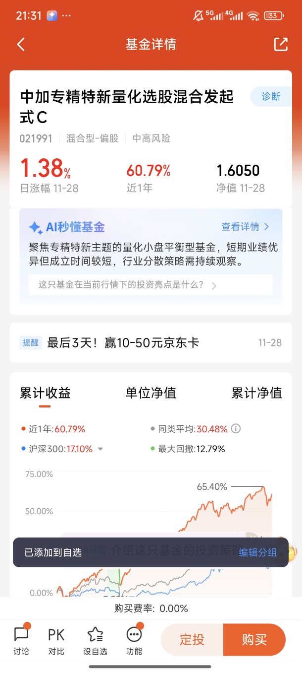 综上,选择专精特新类小盘资产,核心是它平衡了成长潜力与投资风险。而中加专精特新量化选股混合发起式C通过精准的赛道定位和科学的量化策略,把这类“小”的优势充分发挥,无疑是普通投资者布局小登资产时,兼顾稳健与收益的优选方案。@中加基金 @敏锐的鲁朝旭1 @义气的佛觅儿2