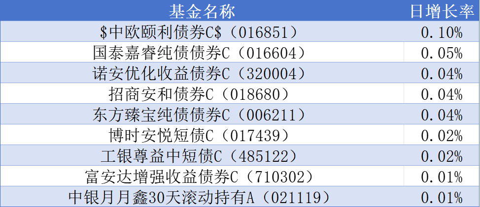 今天股债市场整体表现平稳,投资组合稳步增值的感觉真好。特别欣慰的是$中欧颐利债券C$(016851)收了10个蛋,东方臻宝纯债债券C(006211)收了4个蛋,中银月月鑫30天滚动持有A(021119)收了1个蛋。中欧颐利基金经理严格控制回撤,风险控制做得相当到位,买得很值。#低估补涨号启航#