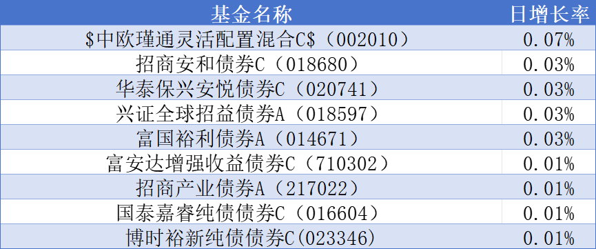 整体行情走得比较稳健,债市方面也还可以。$中欧瑾通灵活配置混合C$(002010)收了7个蛋,富国裕利债券A(014671)收了3个蛋,博时裕新纯债债券C(023346)收了1个蛋。在多数产品承压时连续三天上涨,中欧瑾通的管理能力得到体现。#暖阳创作计划#