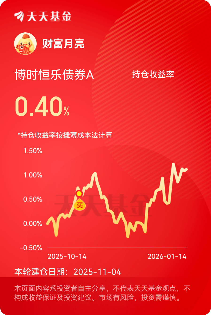 股市在4100点的高点徘徊,债市逐步回暖,固收+策略正当红。$博时恒乐债券A$ 债券仓位扎实,权益部分又能抓热点,一个月到手110多个蛋,近一年收益直逼8%,成绩单相当亮眼。最近华创证券刚出的1月债市策略报告里明确说,当前阶段票息策略是核心配置逻辑。而且今年开年有个特别利好的消息,央行对资金面的呵护意图特别明显,虽然没急于降息,但操作很积极,今天9000亿买断式逆回购操作,跨春节资金面保持稳定。春节在2月中旬的年份,央行通常会通过降准、逆回购等方式对冲流动性缺口,这对债基来说就是实打实的利好,能有效降低波动风险。它的权益仓更是加分项,这只基金新进了豆神教育的十大流通股东,开年以来走势特别强劲。最近教育板块的利好消息不断,政策层面持续优化教育行业监管环境,鼓励职业教育和素质教育发展,豆神教育在相关领域的布局正好能受益。这基的权益仓位控制得很合理,总占比不超过20%,既不会因为个股波动影响整体稳健性,又能在股市上涨时跟着喝口汤,一季度收益可期!#沪深北交易所上调融资保证金比例至100%# #晒收益#