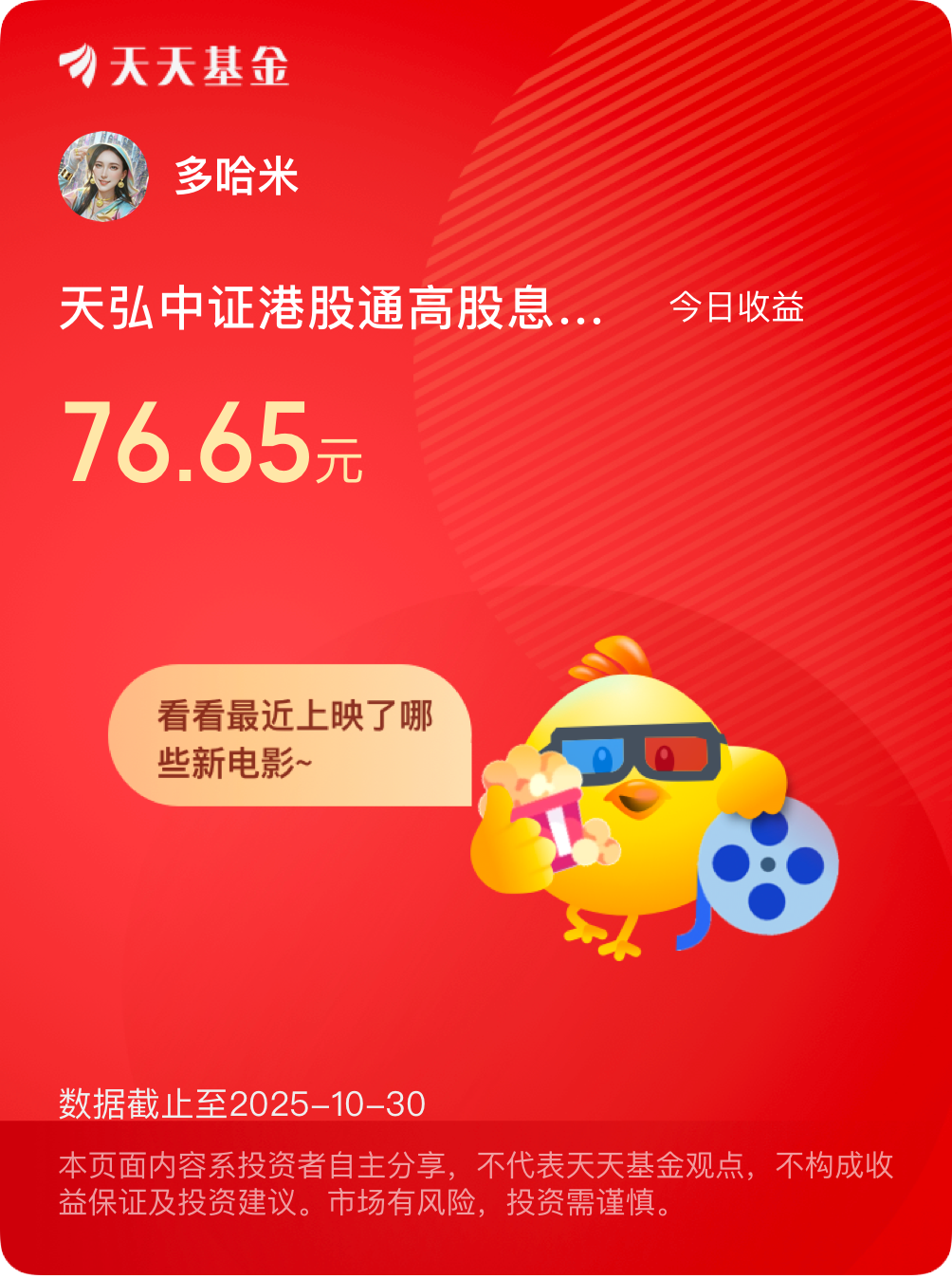 $天弘中证港股通高股息投资指数发起C[022073]$ #晒收益#
