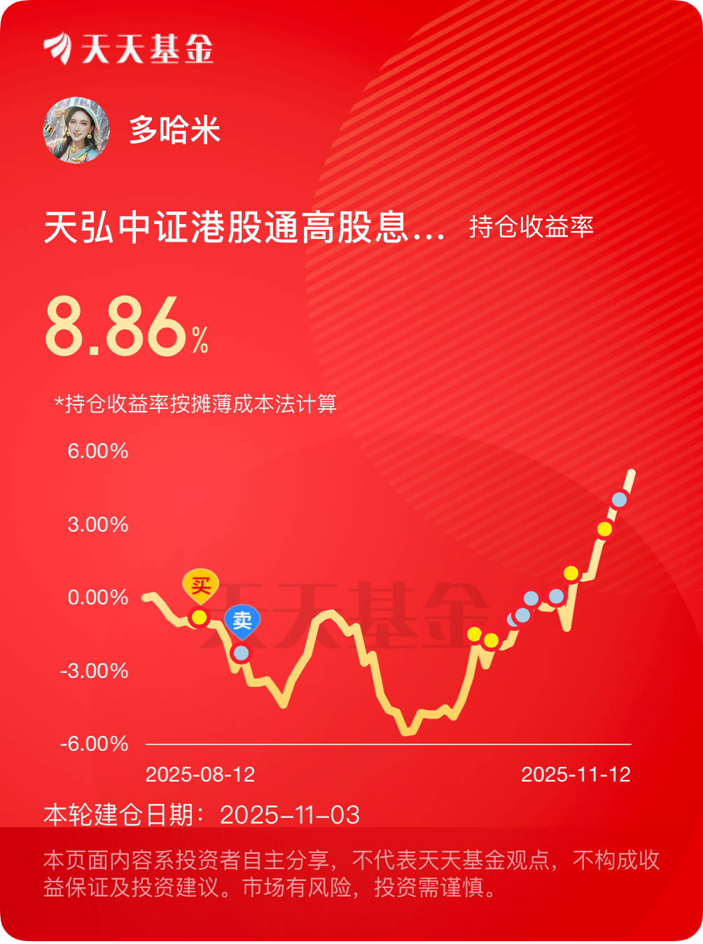 $天弘中证港股通高股息投资指数发起C[022073]$ #晒收益#
