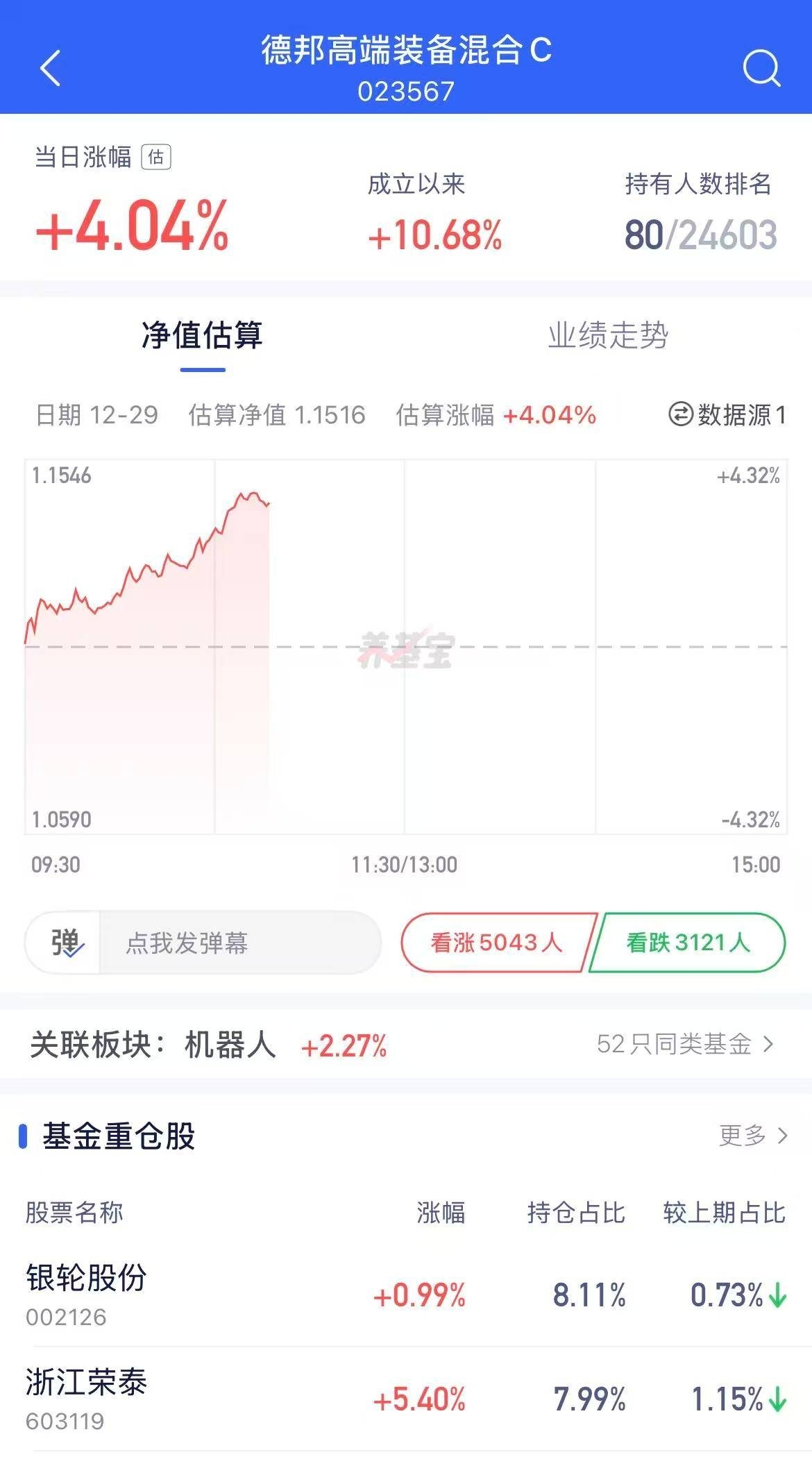 机器人产业从实验室走向商用,又起飞了,前景一片大好。德邦这只很高端,近6月33.