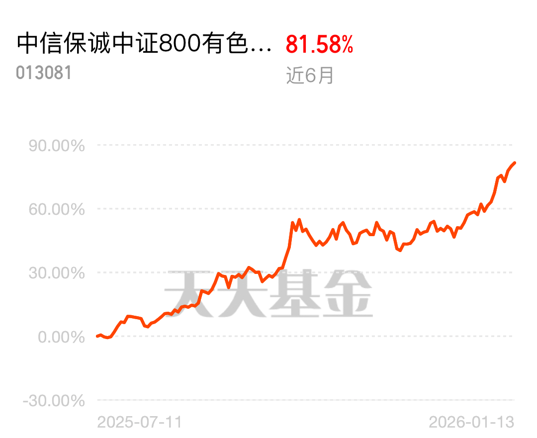 国内有色金属行业安全生产水平提升,生产稳定性增强!$中信保诚中证800有色指数(LOF)C$ 近 6 月 81.58%,同类有色指数里近一周业绩最好,买弹性最好的才能分享生产稳定红利,赶紧布局。