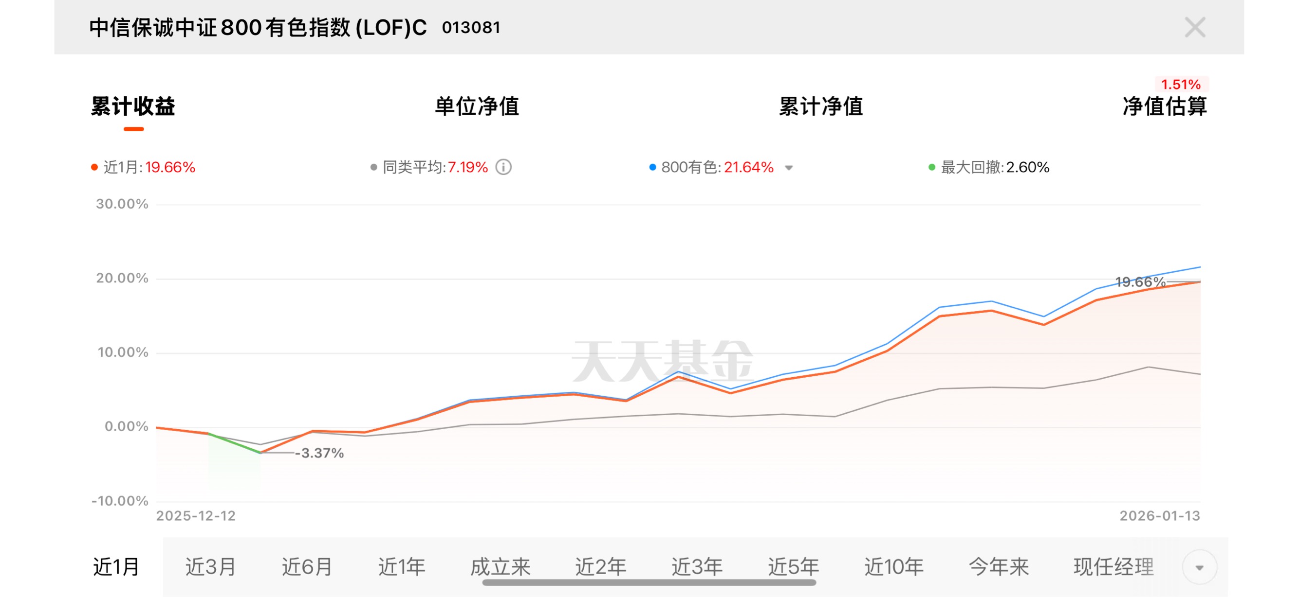 近期金属市场供需格局改善,绿色转型带动需求涨不停。$中信保诚中证800有色指数(LOF)C$ 近 1 月 19.66%,而且是同类有色指数近一周业绩最好的,想赚弹性收益就选它,毕竟买有色就得挑弹性最顶的。