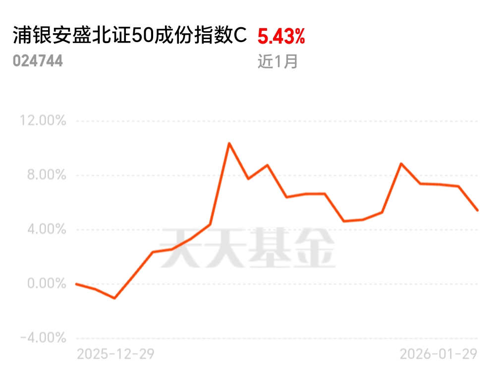 $浦银安盛北证50成份指数C$显韧性,今日盘中逆市上涨,额度足波段易操作,此刻上