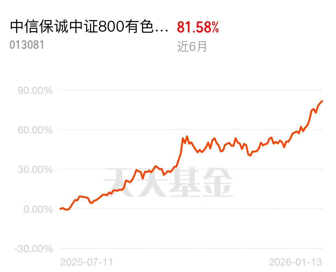 有色板块长期逻辑清晰,新能源转型驱动需求!中信保诚中证 800 有色指数 (LOF) C 近 6 月 81.58%,同类有色指数里近一周业绩最好,买弹性最好的才能分享长期逻辑红利,赶紧上车。