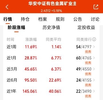 $华安中证有色金属矿业主题指数发起式C$满仓纯有色,今日大涨5.18%近1年飙1