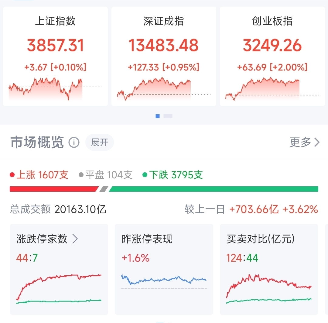 尾盘A股依旧保持强势,三大指数全线飘红,两市成交量达到2万亿上方,放量上涨中,市